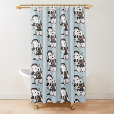 Snoopy Listening To Sling Shower Curtain