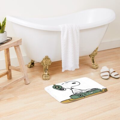 Snoopy Listening To Fine Line Bath Mat